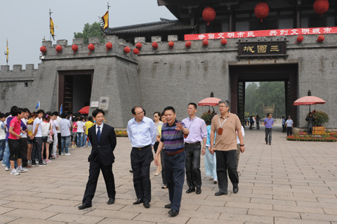 6月8日上午,无锡市委常委、分管旅游业务的常务副市长徐劼,在市旅游局局长、党委书记王建军的陪同下,到无锡影视基地三国、水浒景区进行考察和调研。中视传媒副总经理兼无锡影视基地分公司总经理许一鸣接待了市领导一行,并详细介绍了无锡影视基地的建设、经营和发展历程以及后续发展的一些设想。
