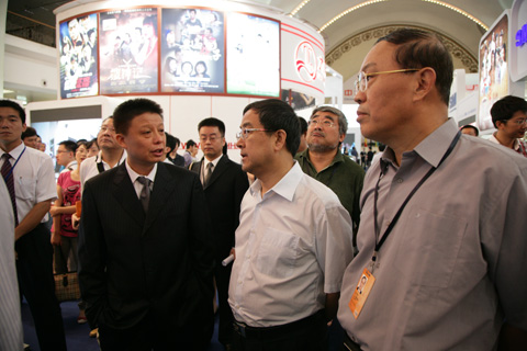 展会期间,广电总局局长蔡赴朝、副局长田进、张丕民、中央电视台台长焦利一行参观了中视传媒股份有限公司展台,并听取中视传媒领导介绍公司经营情况。广电总局电视剧管理司司长李京盛在中视传媒“启程——导演战略签约仪式”上表示:中视传媒是国内影视制作企业中很有成绩、很有实力的企业,五位导演是我们当今电视剧界的著名导演,实力雄厚,所以两方面的结合是强强联合,优势互补,这种联合的结果一定会推出好的作品。今天的联合肯定会为新的电视剧创造很好的模式,贡献更多的精品,结出丰富的成果。