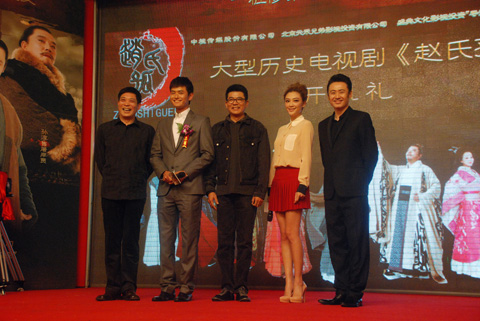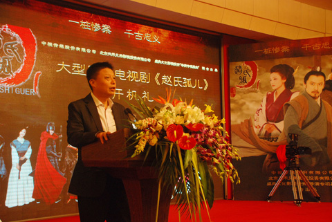 由中视传媒与北京天禾兄弟影视公司联合出品的大型历史电视剧《赵氏孤儿》9月28日下午在北京梅地亚中心举行了隆重的开机典礼。中国广播电视协会秘书长张莉、中央电视台综合频道副总监黄海涛和中国电视剧导演工作委员会郑晓龙、高希希、康洪雷、都晓、李路等嘉宾以及剧组全体主创人员和出品方代表出席了开机典礼。