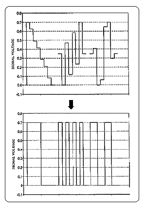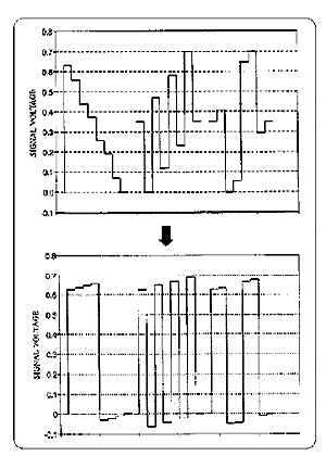 下左图中,是一个标准彩条的波形。上面部分是Y、Pb、Pr的色差波形,下面是RGB三原色波形。