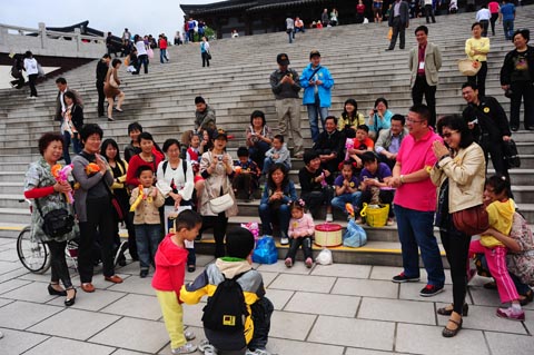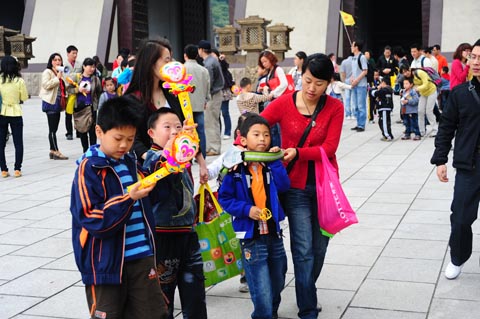 培智学校的同学在家长和其他小朋友的陪同下一起参观游览了三国城景区,观看了“三英战吕布”、“三国城吉尼斯魔法秀”等精彩演出,并在吴王宫内进行了互动游戏。来自亲子家庭的小朋友为了给培智学校本月过生日的10位同学庆祝生日,纷纷表演了唱歌、朗诵、绕口令等节目,并共同唱起《生日快乐》歌、分享甜蜜的蛋糕,为这些智残学生送上浓浓的友情和关爱。