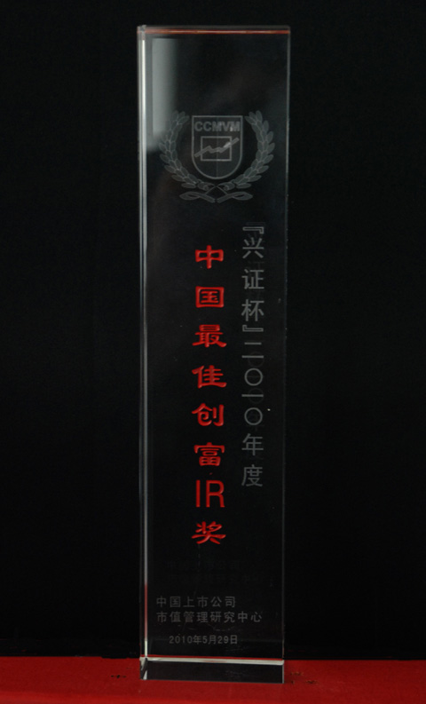 5月29日,中视传媒股份有限公司董秘柴竫荣获“中国证券市场20年回顾与展望论坛暨第四届上市公司市值管理高峰论坛”评选的“2010中国最佳创富IR奖”(IR是“投资者关系管理”的英文简称)。该奖项从上市公司与投资者之间关系维护情况、上市公司帮助投资者充分了解公司投资价值的情况等方面进行评选。