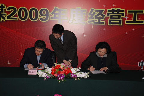 高小平总经理与各负责人签订了《2009年经营指标责任书》、《2009年费用指标预算责任书》、《党风廉政及精神文明建设综合管理责任书》和《安全防火责任书》。