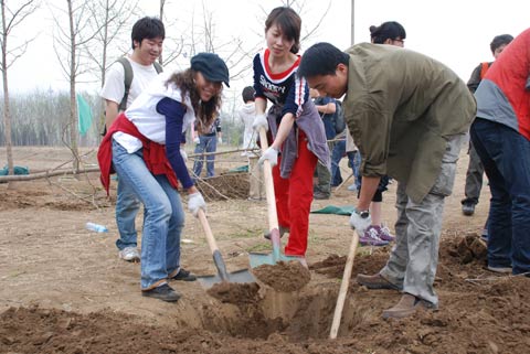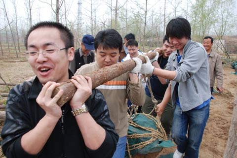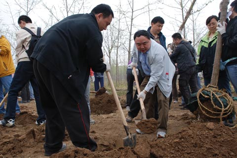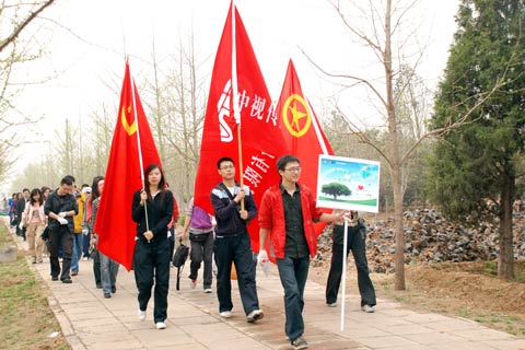 4月11日,中视传媒股份有限公司北京地区联合党支部和团总支联合组织"爱的森林,一起植树;关心绿色,从小树苗开始"为主题的义务植树活动,在公司党委委员、联合党支部书记袁源、团委书记韩冰的带领下,参加活动的80多名员工在朝阳区东坝苗圃种下了一行行银杏树,为早春的北京增添了一丝春意。