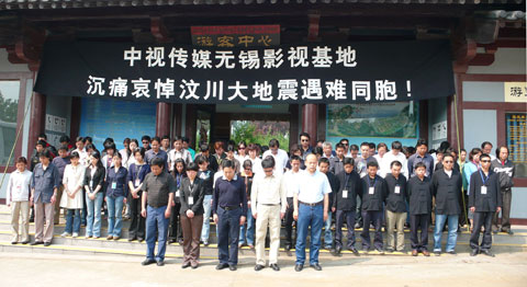 同一时刻,在悬挂着“让这一刻在中国记忆中永存”黑色条幅的中视传媒多功能厅,公司在京全体员工身着素服、神情肃穆地默哀3分钟,向罹难同胞表达深切的哀悼。无锡影视基地、南海分公司的汽车、古船鸣笛,在岗员工同游客们一道,伴着悲怆的汽笛声静立默哀,景区内所有娱乐性表演项目停演3天。