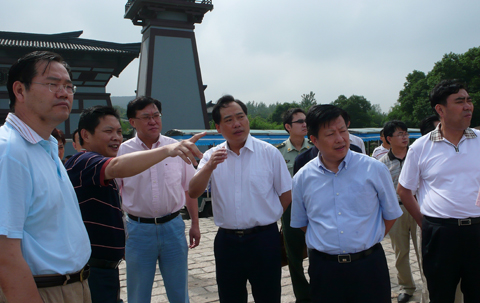 9月24日,无锡市委常委、宣传部长王立人带领由市委宣传部、公安局、旅游局、卫生局等部门组成的检查组,到无锡影视基地分公司对“十一”节前有关准备工作和安全生产工作进行检查。检查组一行对曹操楼船、三江口吴王宫码头、游客中心等景点进行了仔细察看,对基地“十一”节前充分的准备工作和良好的安全状况表示非常满意。公司副总经理、分公司总经理许一鸣、无锡影视基地常务副总张健峰、副总季美娟陪同检查。