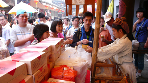 游客争相购买"武大郎炊饼"。