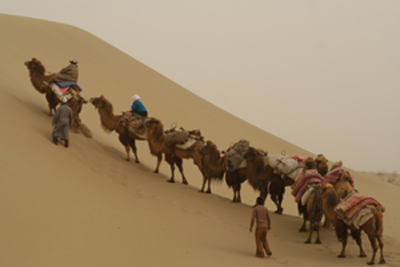 摄制组在新疆沙漠中进行艰苦拍摄