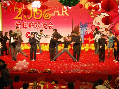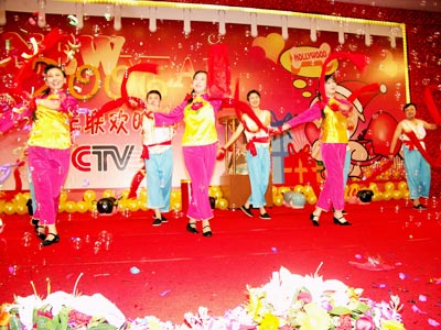 总会计师柴竫(左一)与财务部员工——舞蹈《好日子》