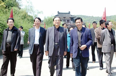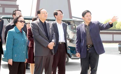 4月20日上午,原中央政治局委员、中央书记处书记、中宣部部长丁关根同志携夫人,在无锡市委副书记周解清和市政府接待办的陪同下,视察了中视传媒股份有限公司无锡影视基地。