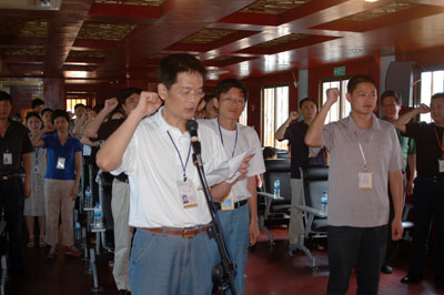 6月30日,无锡影视基地党支部、分工会、团总支在三国城"孙权号"古战船上联合举办了"党在我心?quot;主题活动。全体党员、团员和部分员工骨干参加了此次活动。全体党员进行了庄严的入党宣誓仪式,重温入党誓词,时刻牢记党的宗旨。随后,还举行了歌咏比赛和党的基本知识竞赛。公司党委委员许一鸣同志作了讲话,他号召党团员们要带头参加基地各项经营建设工作,在员工群众中起好先锋模范作用,共创基地美好明天。