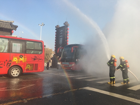 演练前,分公司再次对车队驾驶员进行车辆“险情”处置预案培训,向参加演练人员介绍演练安排,车辆应急情况下灭火器材、逃生通道、逃生注意事项等。演练时,大客车突发“火情”,驾驶员提示出现“险情”后,一边安抚乘客,立即停车、转移人员,一边报警求援;分公司专职消防队接报后,迅速出警赶赴现场,及时扑灭“火情”,成功处置了突发事件。