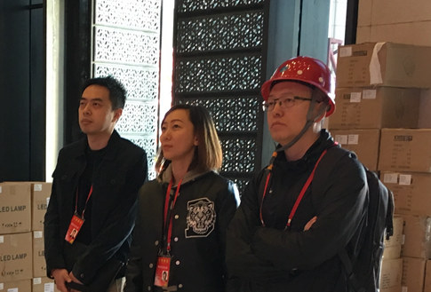 与项目负责人中视北方包装四部王璐(中)在现场商议视频修改方案