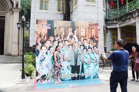 南海景区游客在秋晚分会场取景地拍照留念