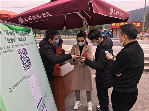 工作人员引导游客安装“锡康码”