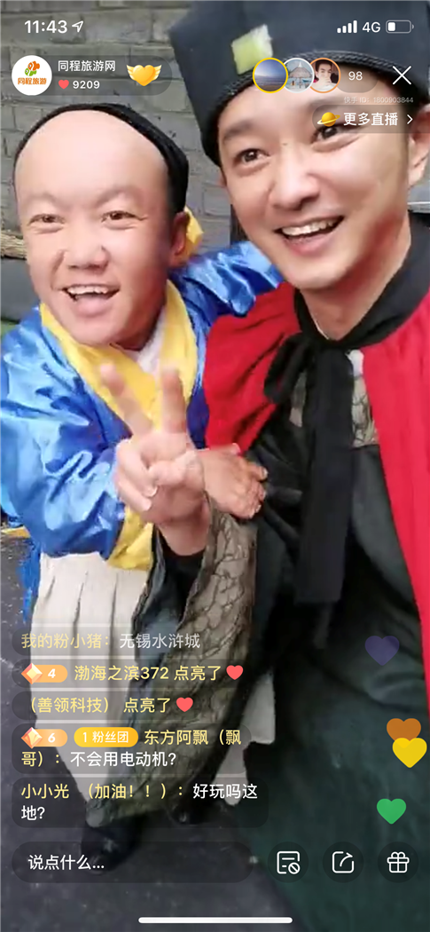无锡影视基地官方抖音号、同程旅游网快手号直播页面