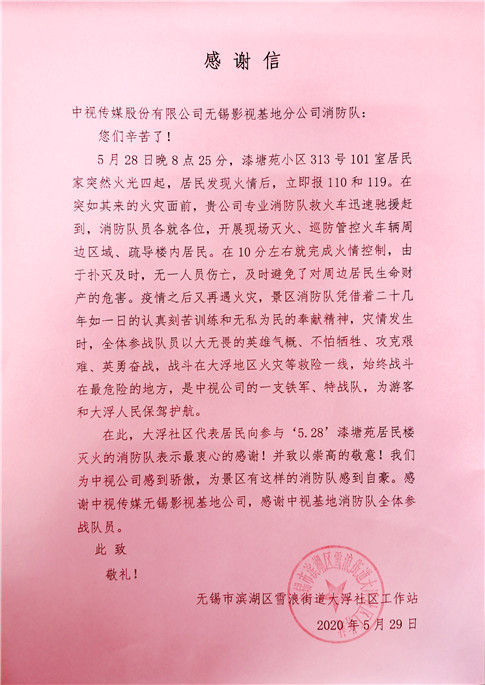 5月28日晚8点27分,无锡影视基地外部大浮社区漆塘苑小区一住宅发生火灾,场面失控,多户居民受到威胁,无锡分公司专职消防队立即出警救援,成功扑灭火点。