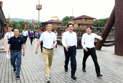 无锡市市委书记黄钦(右二)来无锡影视基地调研太湖蓝藻防治工作