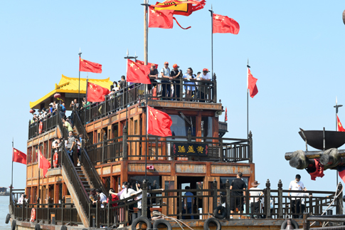 为了能让游客欣赏太湖、亲近太湖,更好地将影城美景与太湖风光相结合,无锡影视基地分公司开发出“乘古船游太湖”特色体验项目,先后打造多艘仿古游船,带领游客近距离感受太湖的烟波浩渺,纵览岸上的恢弘历史场景。多年来该项目安全有序运营,广受游客欢迎。