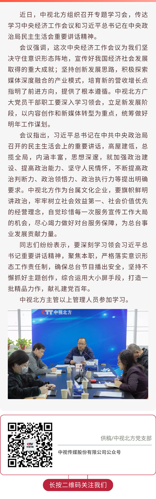 中视北方传达学习中央经济工作会议和习近平总书记在中央政治局民主生活会重要讲话精神