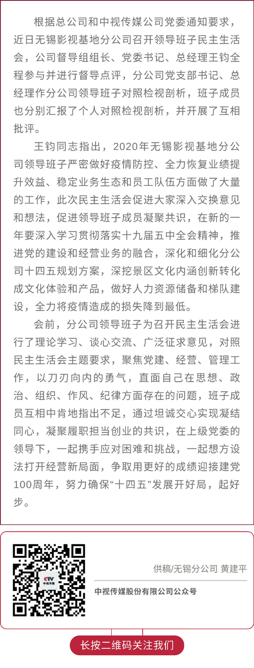 无锡影视基地分公司召开领导班子民主生活会