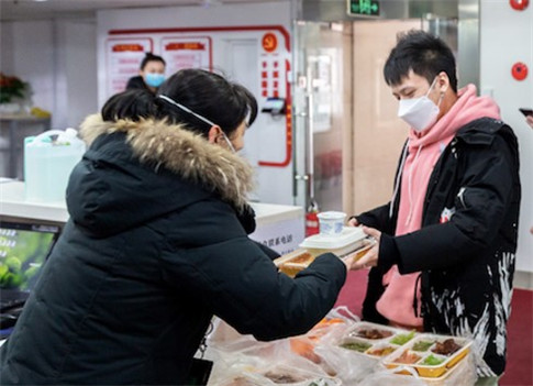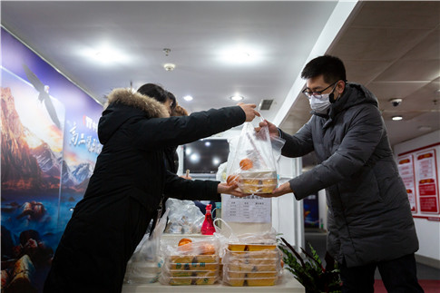为了确保每一位在岗职工吃得好,吃得健康,行政系统每天有专人为大家送去热乎的放心盒饭。在岗党员义务承担起服务和监督的工作,确保大家分散用餐,杜绝风险隐患。