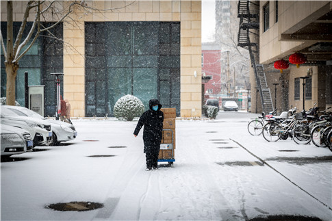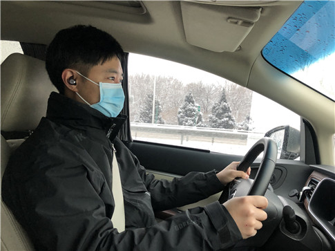 连日风雪交加,路况凶险,班车志愿者司机宋科握紧手中方向盘,一路平稳驾驶,安全接送同事上下班