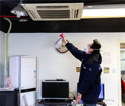 消杀防护工作是应对此次疫情的首要工作,为了保证卫生安全无死角、员工健康无遗漏,公司迅速动员,多方筹措物资。迅速采购、募集口罩5000余枚、酒精棉40余盒、84消毒液若干,保证东西两地办公区每日消杀工作不间断,每位到岗加班职工有口罩。